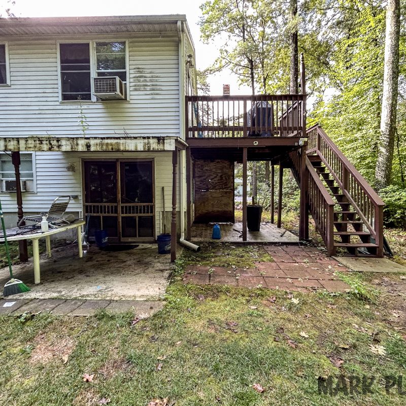 The old deck wasn’t attached to the house. No flashing. Built over vinyl siding. Water had been seeping into the wall for decades—rotting it from the inside out.