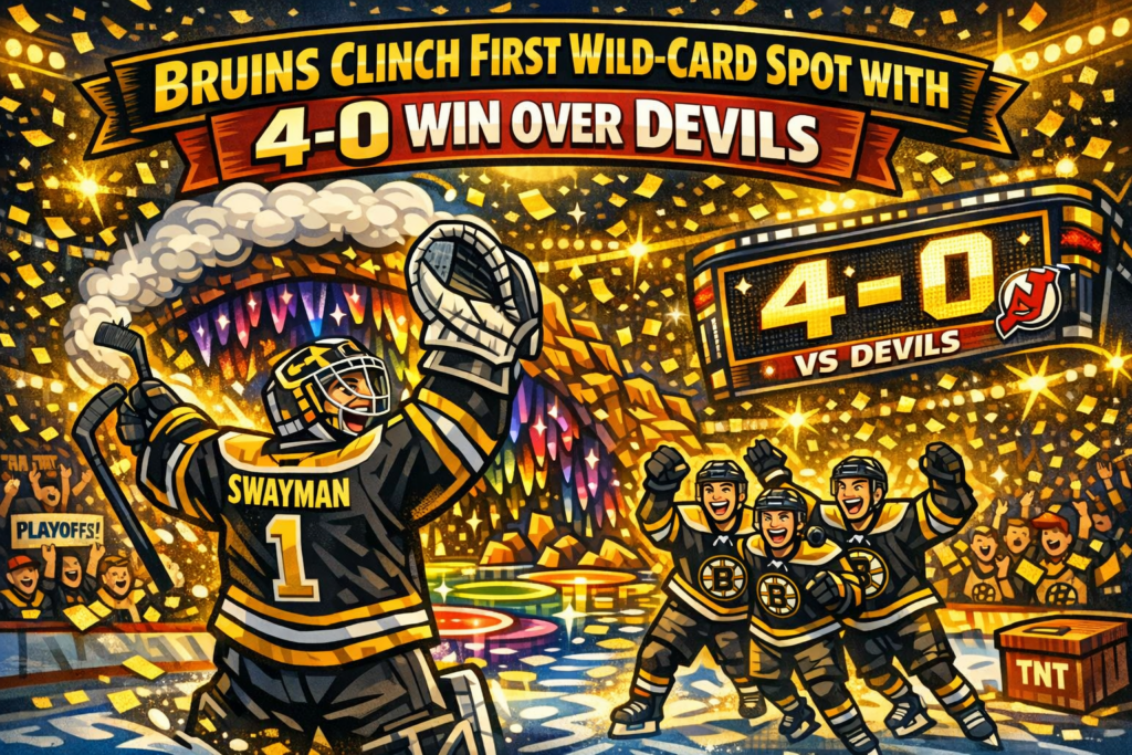 On April 14, 2026, the Boston Bruins concluded their regular season with a dominant 4-0 victory over the New Jersey Devils at TD Garden, securing the first wild-card spot in the Eastern Conference. This win ensures the Bruins will face the Atlantic Division champion Buffalo Sabres in the first round of the Stanley Cup Playoffs. The Bruins’ offense was led by Morgan Geekie, who opened the scoring less than a minute into the game, and Mark Kastelic, who netted two goals in the third period. Viktor Arvidsson added a late goal to seal the win. Goaltender Jeremy Swayman earned the shutout, stopping all 21 shots faced. The Bruins’ special teams were effective, with a power play operating at 23.4% and a penalty kill at 76.9%. The Devils, despite a strong season, were unable to generate offense in this decisive matchup. The Bruins will now prepare for their upcoming playoff series against the Sabres, aiming to advance further in the postseason.